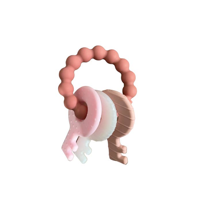 Three Hearts is excited to bring a new teething rattle for your babies! This Teething rattle is unlike our other rattles that have our organic beech wood but made out of BPA, Non-toxic, Food grade, Medical grade silicone. This key rattle is freezable and dishwasher safe. Colors are very similar to our Three Hearts colors and makes for a great gift for baby!