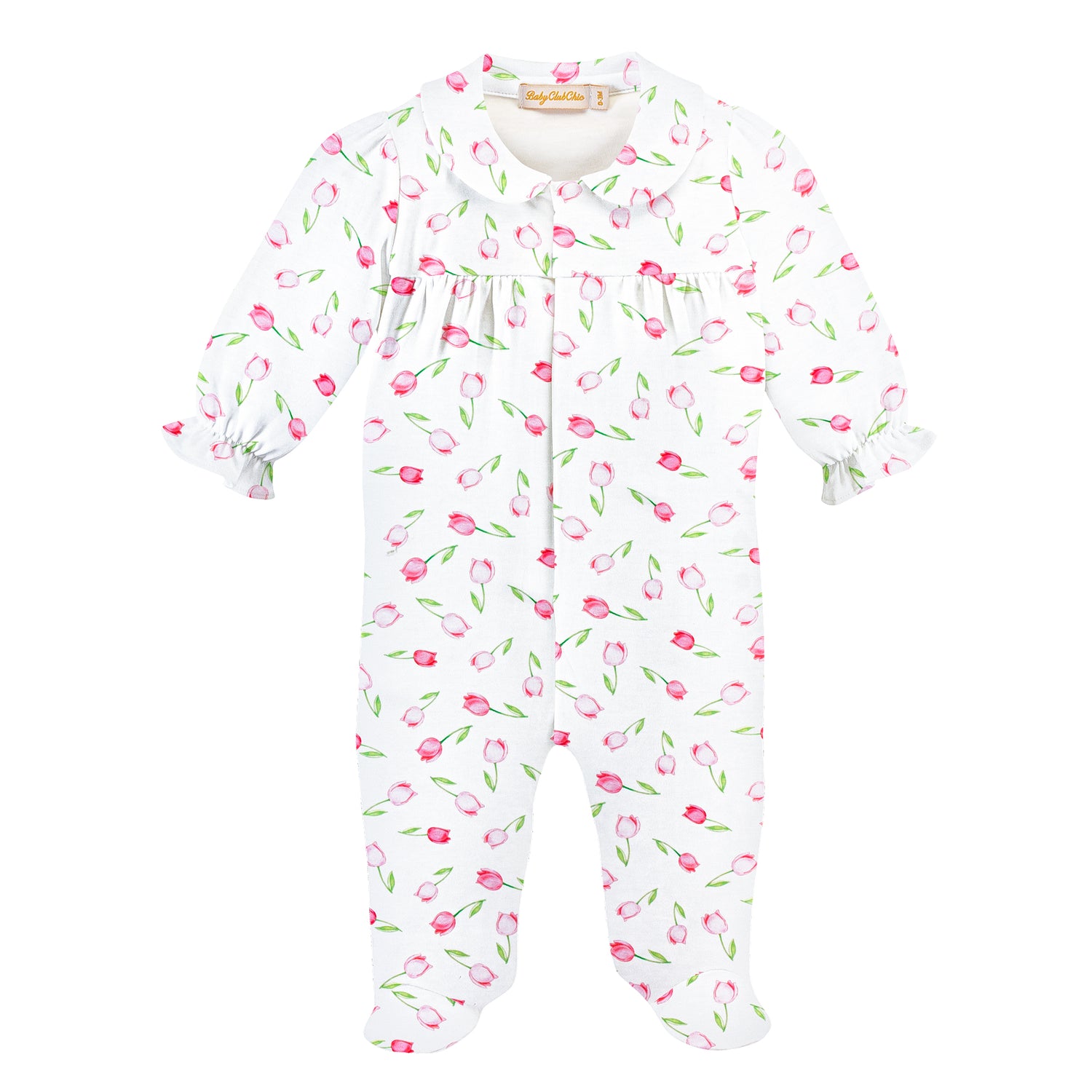 Printed Footie w/ Round Collar | Pink Baby Tulips