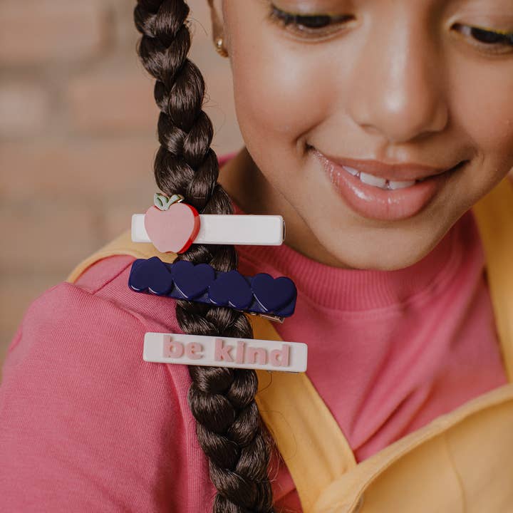 Apple Be Kind Hearts Navy Hair Clips