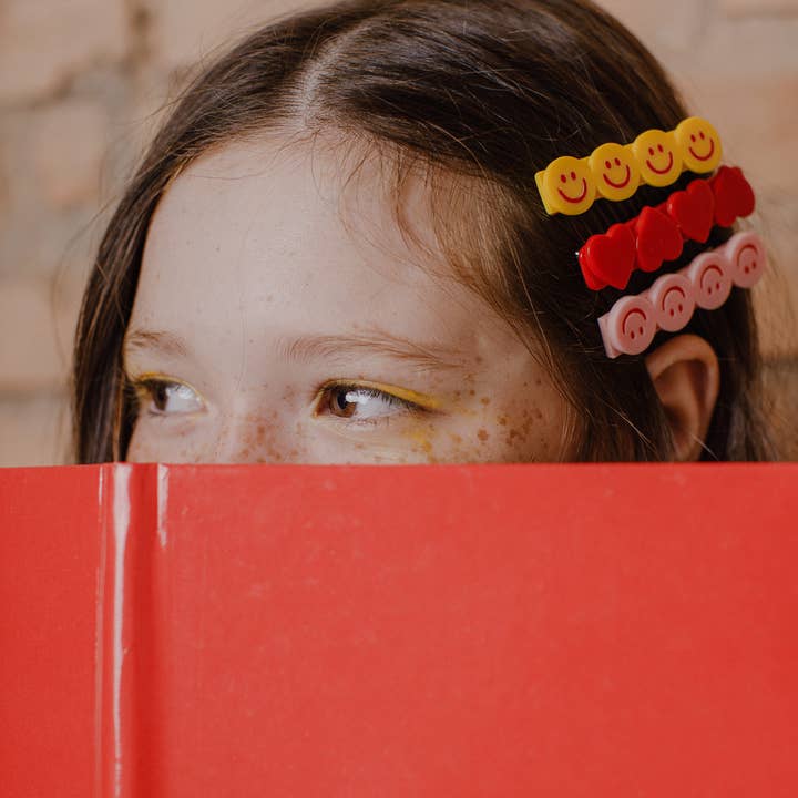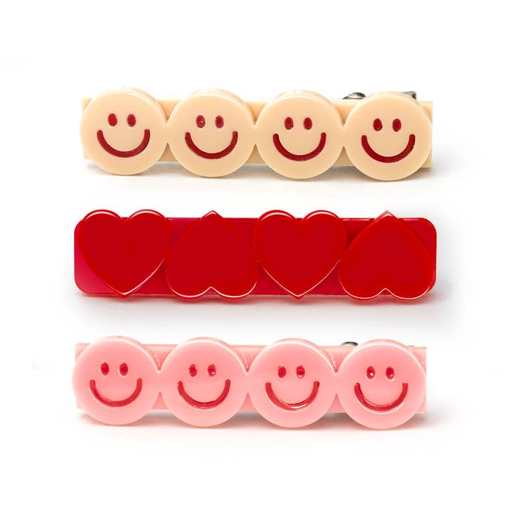 Happy Faces Hearts Pink Red Hair Clips