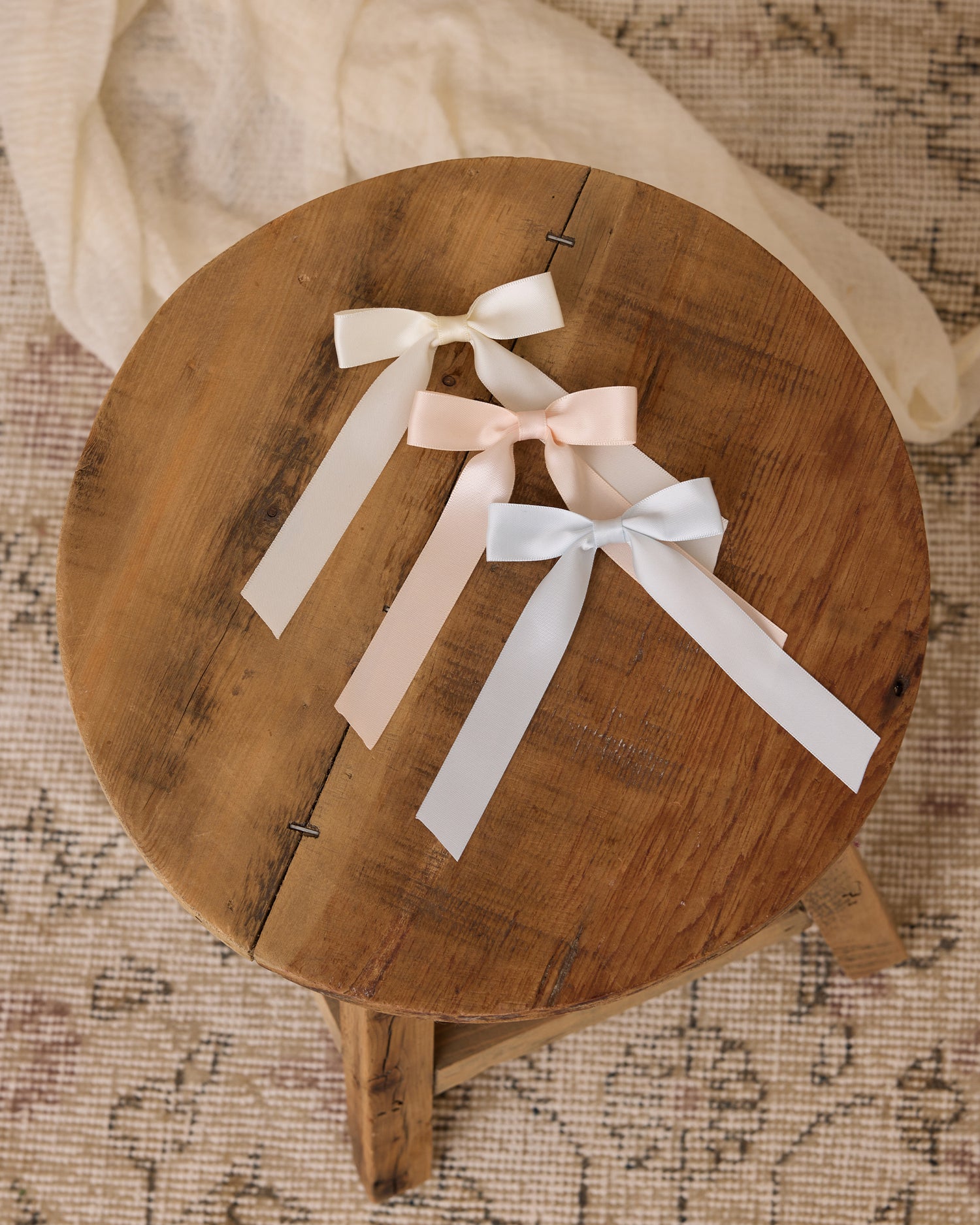 SATIN RIBBON BOW || BLUSH, IVORY, POWDER BLUE