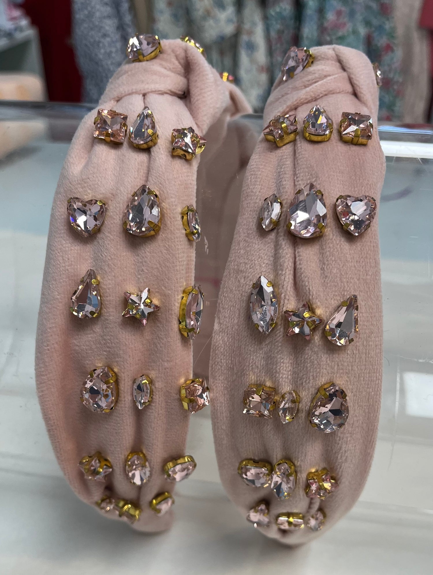 Velvet Rhinestone Knot Headband | Pink