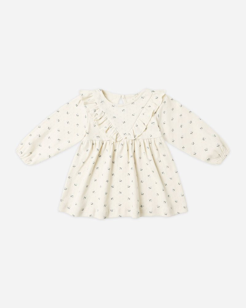 LONG SLEEVE RUFFLE DRESS || BLUE DITSY