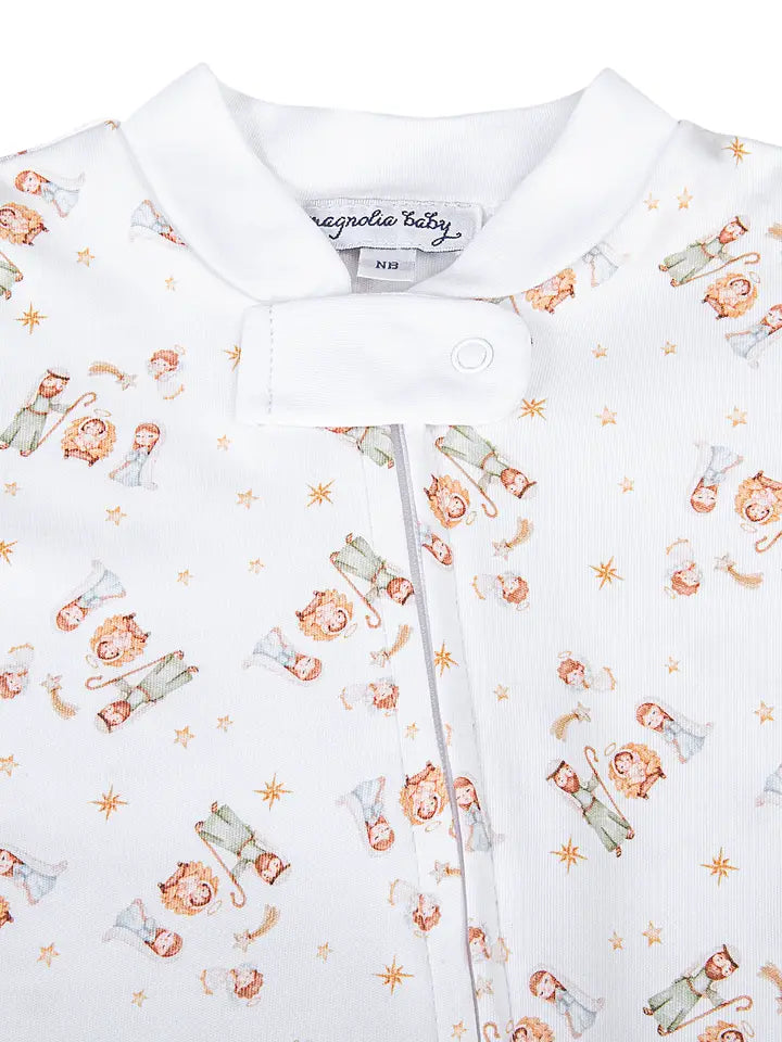 A Child Is Born Printed Zipper Footie