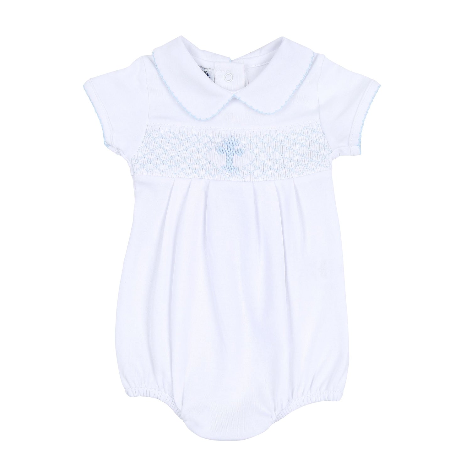 Blessed Smocked Collared Boy Bubble | Light Blue