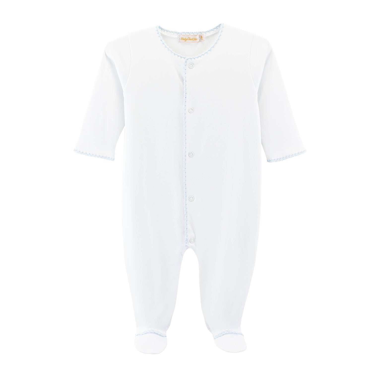 Crochet Trim Footie | White w/ Blue Trim