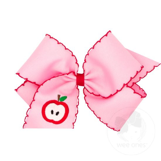 King Apple Embroidered Grosgrain Hair Bow with Moonstitch Edge