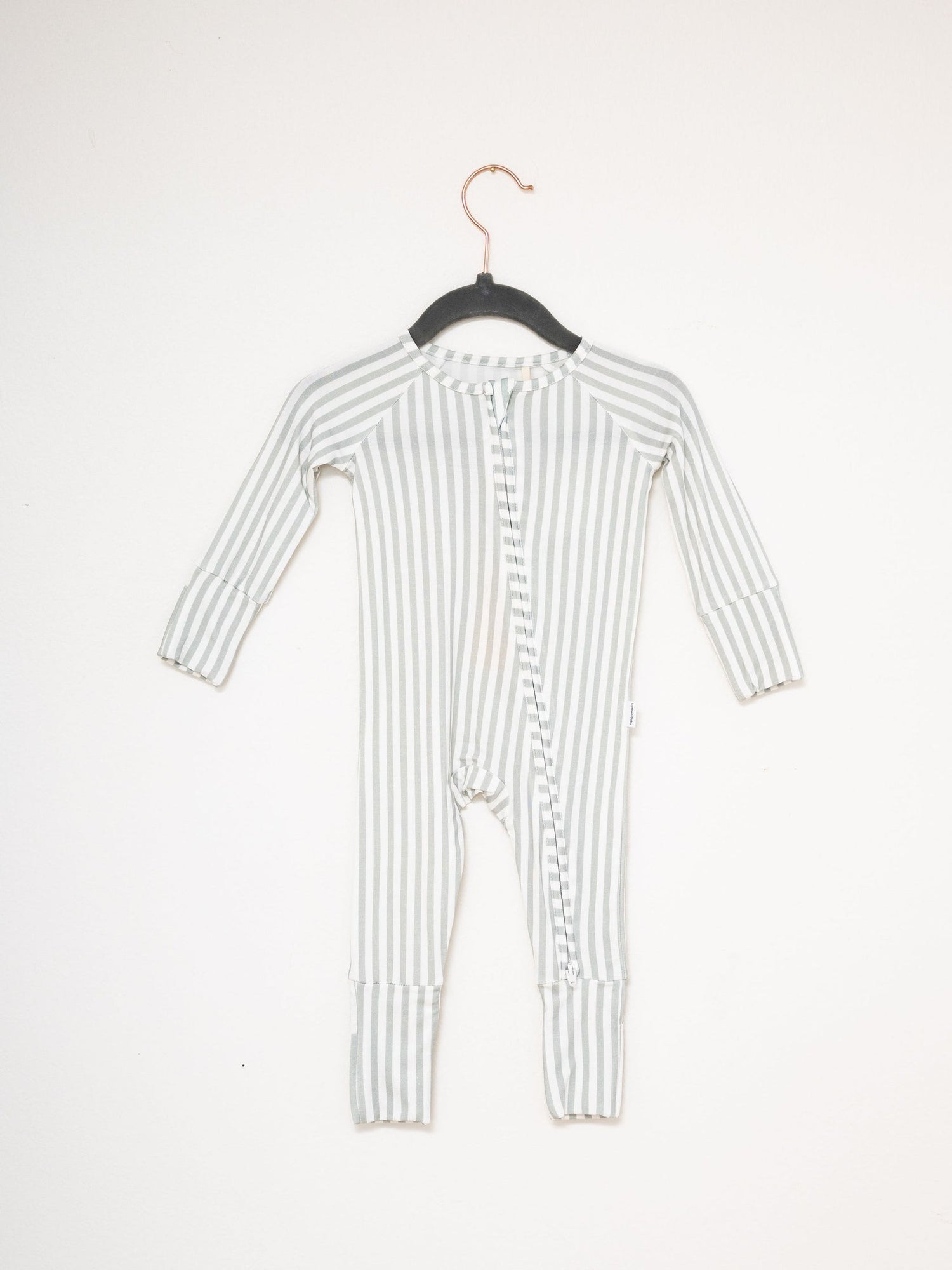 Mini Stripe Sleep Romper | Sage Cabana Stripe