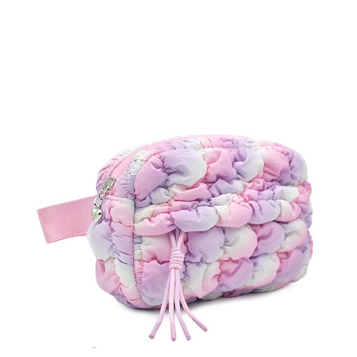 Perfect for their hands-free on the go fun! Keep all their must have daily essentials organized with our trendy nylon quilted scrunch fanny pack in our berry ombre print!