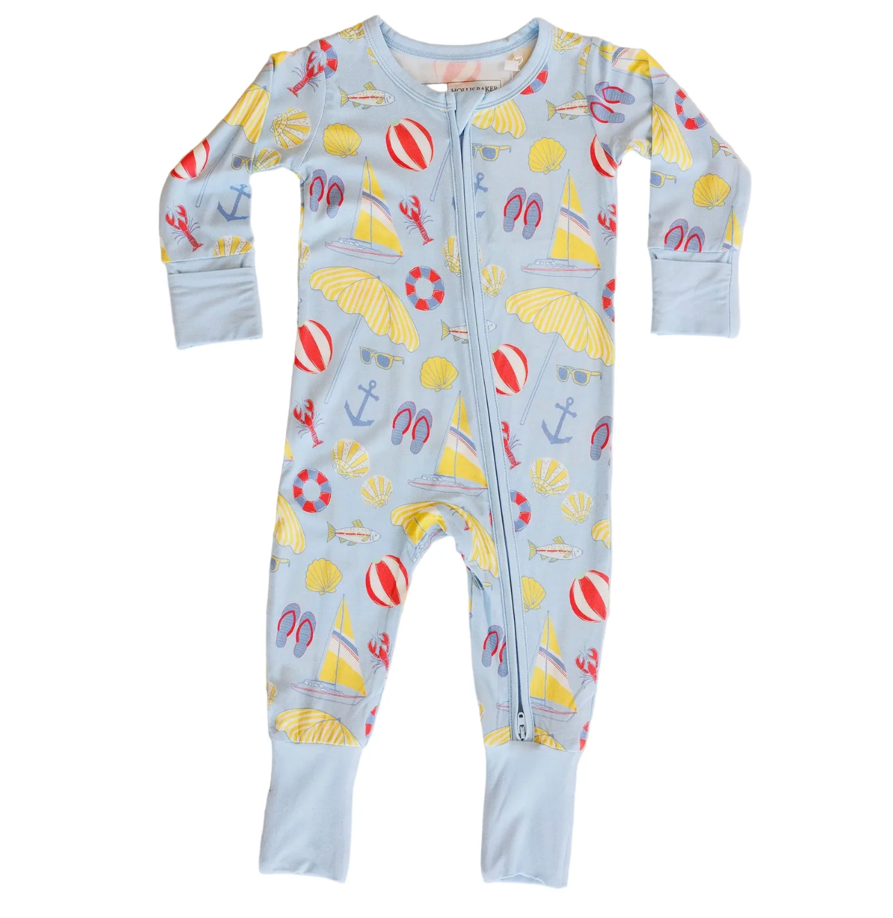Made for slow mornings and sweet summer nights, the Short Loungewear Set in our Beach Days Blue print is crafted from the same buttery-soft bamboo blend as our beloved zipper rompers. Lightweight, breathable, and perfectly stretchy, this two-piece set keeps little ones comfortable from bedtime to breakfast.