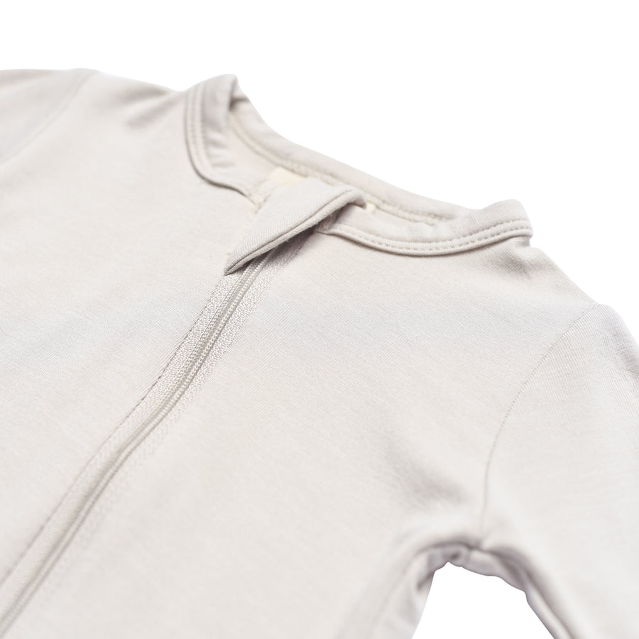 Everything you love about our soft and snuggly classic footies now with a zipper! The dual zipper option makes wardrobe or diaper changes a breeze. Made from our silky smooth bamboo rayon creating a cool outfit in a rainbow of modern, earthy colors. The stretchy material gives you the option to have a snug or looser fit while still staying comfortable and stylish. For those babies starting to walk we now have grips starting on sizes 6-12 Months.